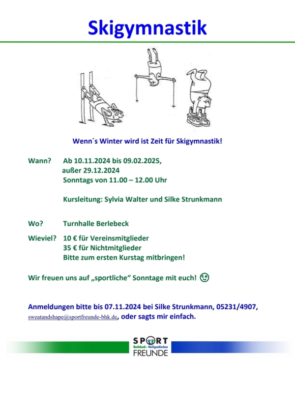 Anmeldungen bitte bis 07.11.2024 bei Silke Strunkmann, 05231/4907, sweatandshape@sportfreunde-bhk.de, oder sagts mir einfach.