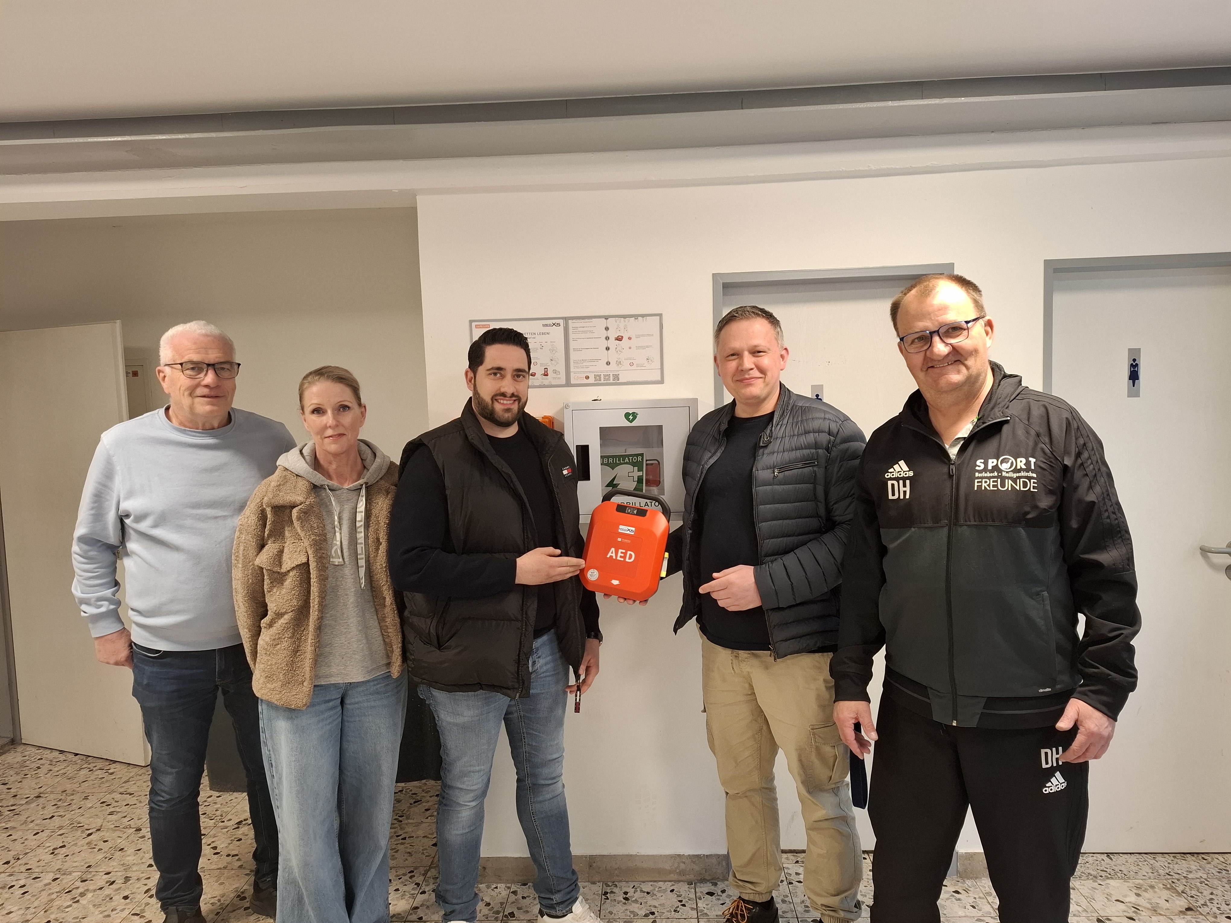 Die Sportfreunde Berlebeck-Heiligenkirchen freuen sich über eine bedeutende Erweiterung ihrer Sicherheitsausstattung! Dank einer äußerst großzügigen Spende der Familie Hübenthal, Inhaber der Falkenapotheke Heiligenkirchen, sowie von Herrn Emanuele Saporito, Inhaber des neuen Reifenfachbetriebs an der Paderborner Straße 97, konnte ein weiterer Defibrillator angeschafft und installiert werden.