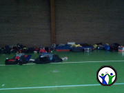 Gegen 10.15 Uhr ging es mit Vereinsfahrzeugen und einem privaten Bulli nach Frankreich. Nachdem die Sporthalle bezogen wurde, fand noch ein "lockeres" Training auf einem der beiden Rasenplätze in Arneke (F) statt. Alle Spieler konnten sich die Beine "vertreten".